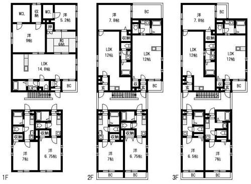 1LDK×2戸 1K×4戸 1R×4戸 3LDK×1戸 |